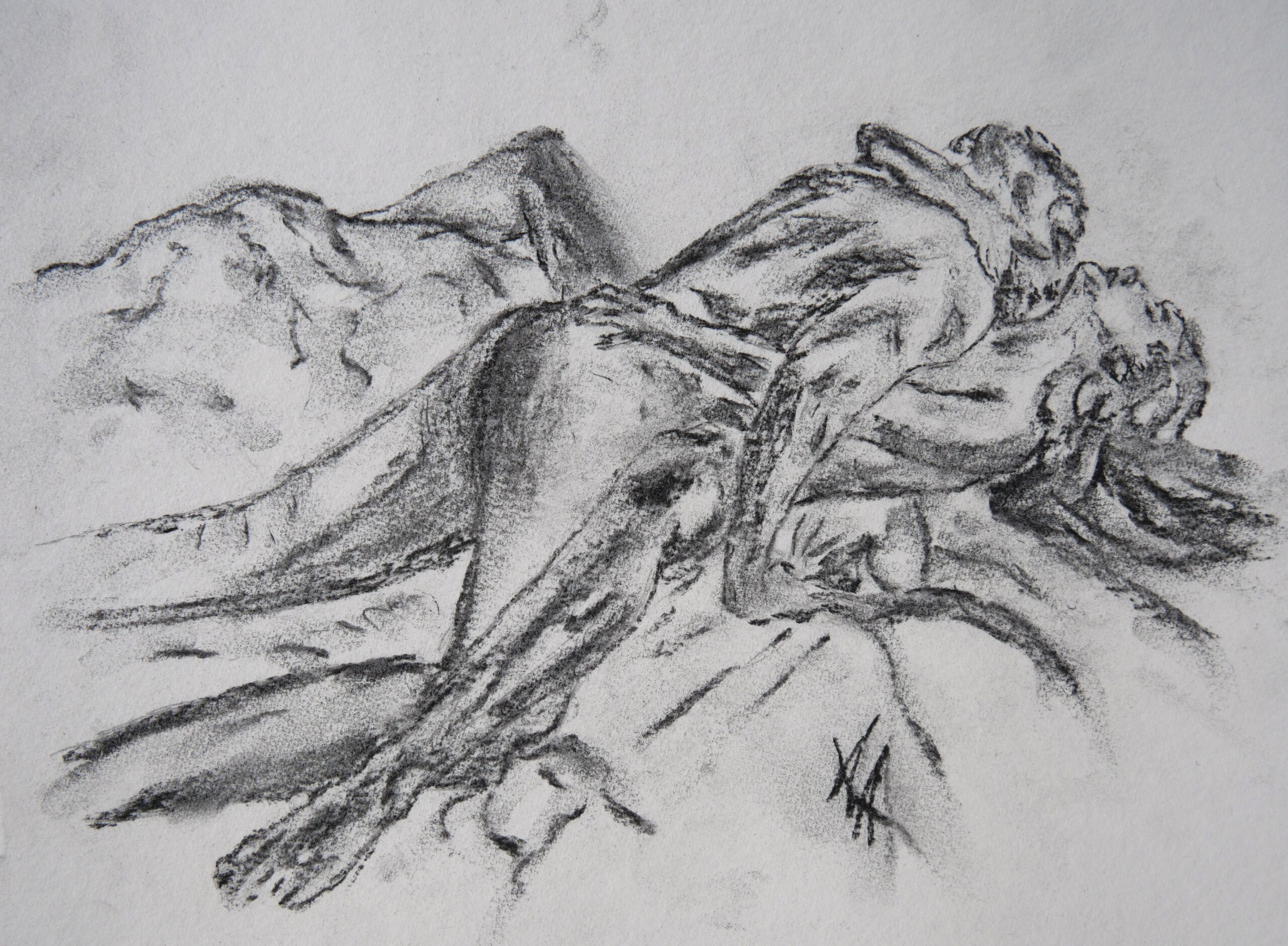 Erleben Sie die rohe Emotion und kraftvolle Verbindung in Leidenschaftliche Umarmung, einer beeindruckenden Kohlezeichnung, die ein Paar in einem innigen Moment zeigt. Starke Kontraste und ausdrucksstarke Linien vermitteln Verlangen, Zärtlichkeit und die elektrisierende Nähe zwischen Frau und Mann. Dieses eindrucksvolle Kunstwerk feiert die Schönheit menschlicher Verbindung, Verletzlichkeit und geteilte Leidenschaft.